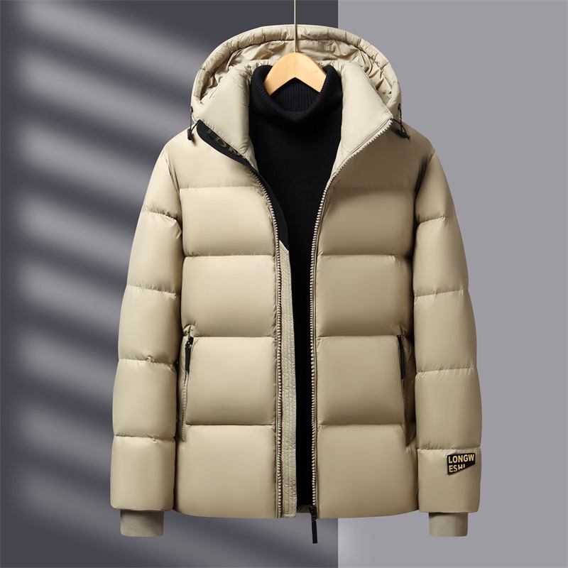 Nueva chaqueta de plumón con capucha de alta gama, versátil, informal y de oro negro para hombre, abrigo cálido y grueso