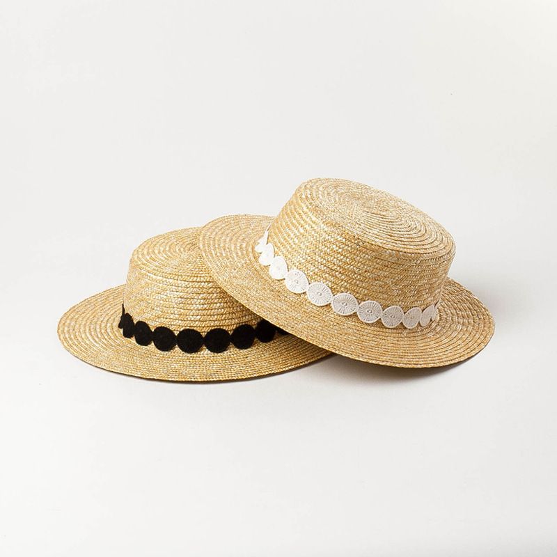 color : Sombrero de copa plana de paja de trigo - Negro punteado