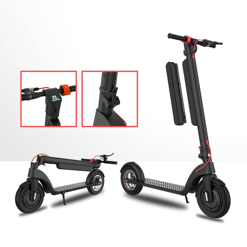Powerful 350W Motor & Long Range The X8 Electric Scooter for Adults features a robust 36V 350W motor, delivering a max speed of 25 km/h and a 30-48 km range per charge, making it perfect for daily commutes and urban travel. 10-Inch Pneumatic Tires & High Ground Clearance Designed for a smooth ride, this foldable electric scooter with 10-inch tires provides excellent shock absorption, while its 4.5-inch ground clearance ensures stability on uneven roads. Detachable Battery & Fast Charging Equipped with a removable 36V 10.4Ah lithium battery, this electric scooter with 3-hour charge time offers convenience and flexibility, allowing you to charge at home or the office. Double Braking System & Safety Features The adult electric scooter with disc brake & E-ABS ensures reliable stopping power, while the LED headlight, taillight, and bell enhance visibility and safety during night rides. Portable & Heavy-Duty Design With a foldable stem and compact folded size (1083×420×460mm), this electric scooter for riders up to 125 kg is easy to carry and store, ideal for city commuters and public transport users. Model:X8 Electric Scooter Ground Clearance:4.5 in (115 mm) Motor:36 V, 350W Battery Type:Li-ion Charger:42 V DC, 2 A Input:100-240 V AC, 50/60 Hz Charging Time:Approx. 3 hours Battery Capacity:36 V / 10.4 Ah, 375 Wh Operating Temperature:32 to 95 °F (0 to 35 °C) Tire (Front & Rear):10-inch, tubed pneumatic tires Max Speed:25 km/h Range:30-48 km Max Climbing Capability:15° Max Load:100 -125 kg Foldable Stem:Yes Battery Pack:Detachable Brake System:Double braking system with rear disc brake and E-ABS front brake Speed:3 settings (linear adjustment) Illumination:LED headlight + taillight (3 W) Warning Function:Bell IP Rating:IPX4 Operating Temperature:32 to 95 °F (0 to 35 °C) Storage Temperature:14 to 104 °F (-10 to 40 °C) Net Weight:15kg Gross Weight:18kg Unfolded Size:1083 × 420 × 1186 mm Folded Size:1083 × 420 × 460 mm Package Size:1130*165*490mm What’s in the Box 1x Electric Scooter 1x Scooter Battery (Installed) 1x Charger 1x Took kits 1x Manual EU/UK Countries Can be delivered within 4-7 Days.You don't have to pay delivery fee. If you encounter any problems when you receive the product, please contact our professional after-sales customer service first.