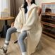 This patchwork hooded cardigan blends cozy thickness with a deliberately slouchy silhouette, made for slow days and crisp air.