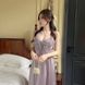 Pijama de mujer primavera/verano de seda de hielo largo vestido de dormir de mariposa conjunto de camisón con almohadillas para el pecho sexy de encaje sin espalda
