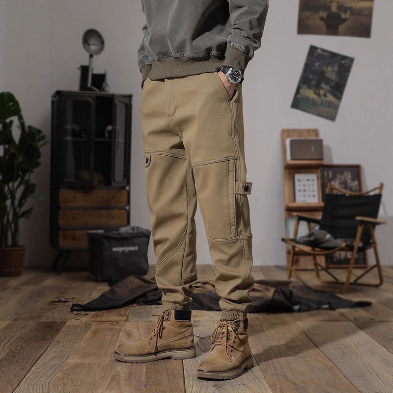 Autumn Winter New American Style Fleece-Lined Cargo Pants Men's Straight-Leg Casual Long Pants Wide-Leg Jogger Harem Pants