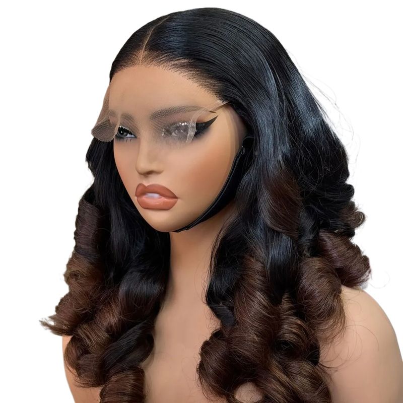 Peluca de cabello humano sin pegamento, color degradado, densidad 300, rizos elásticos, 13x4, encaje frontal, prearrancado, 360, 13x4