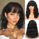 Peluca sintética ondulada corta para mujer - Bob negro con flequillo y textura ondulada (resistente al calor, gorra completa)