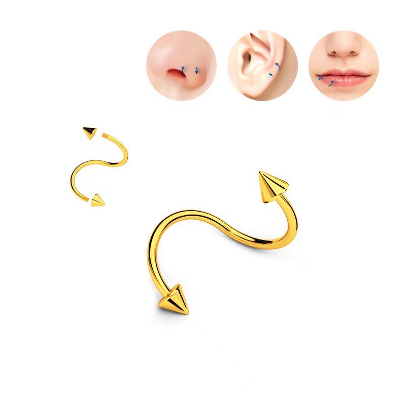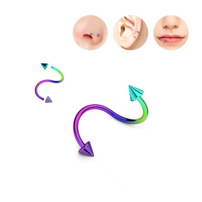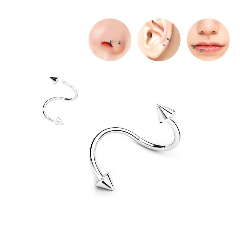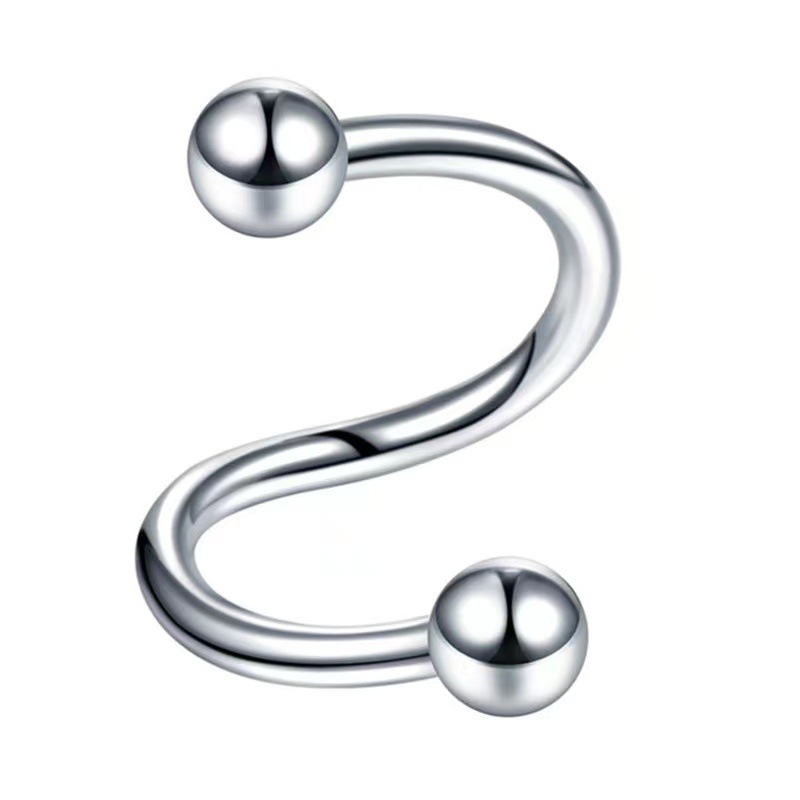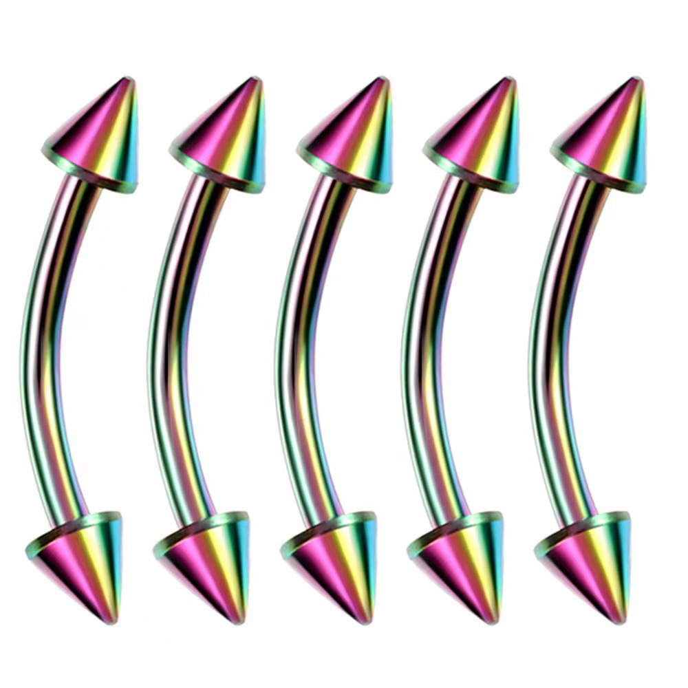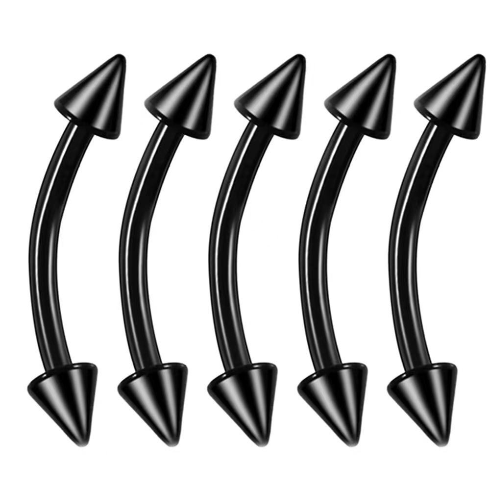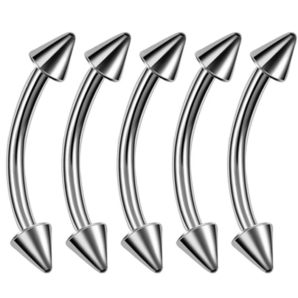 Cross-border mixed piercing styles: stainless steel threaded tongue piercing, curved barbell, pointed cone navel piercing, round ball lip piercing, eyebrow piercing, nose ring