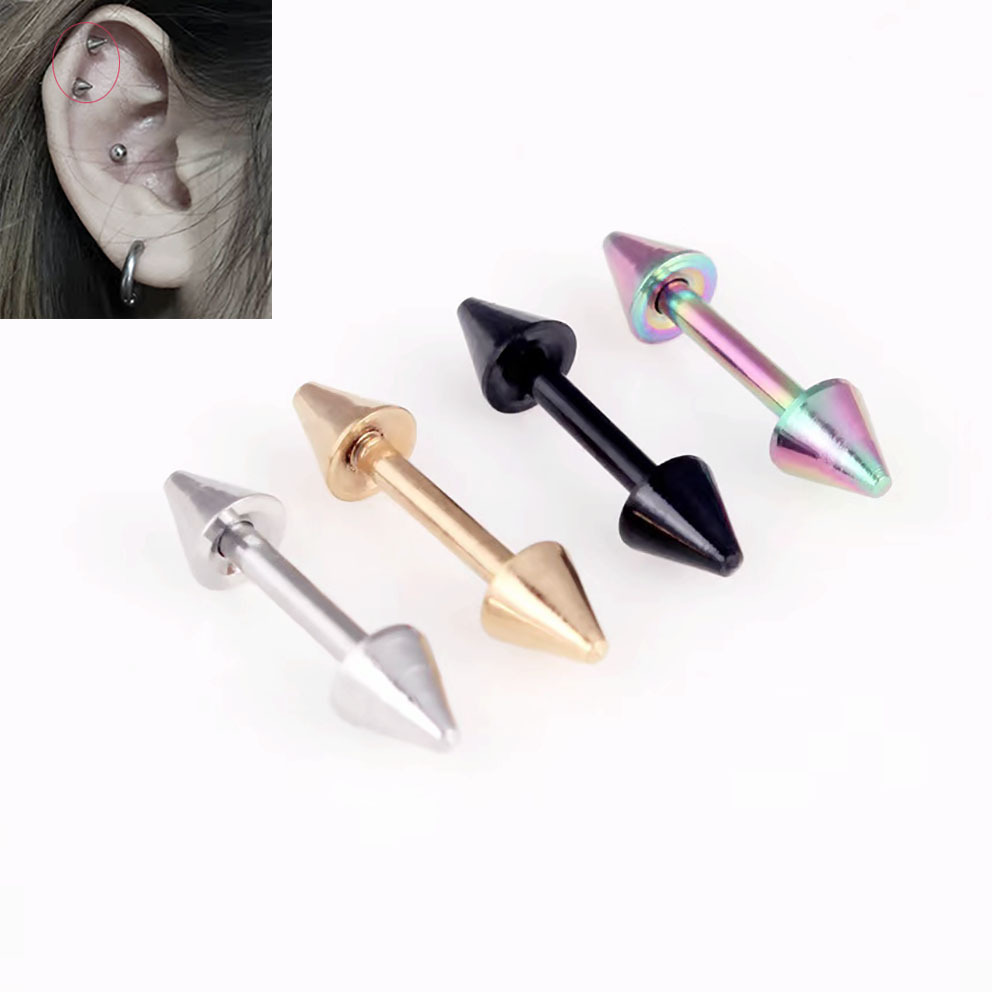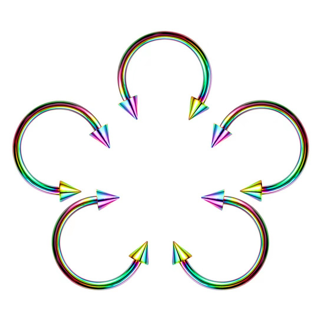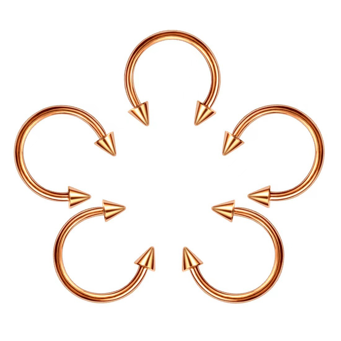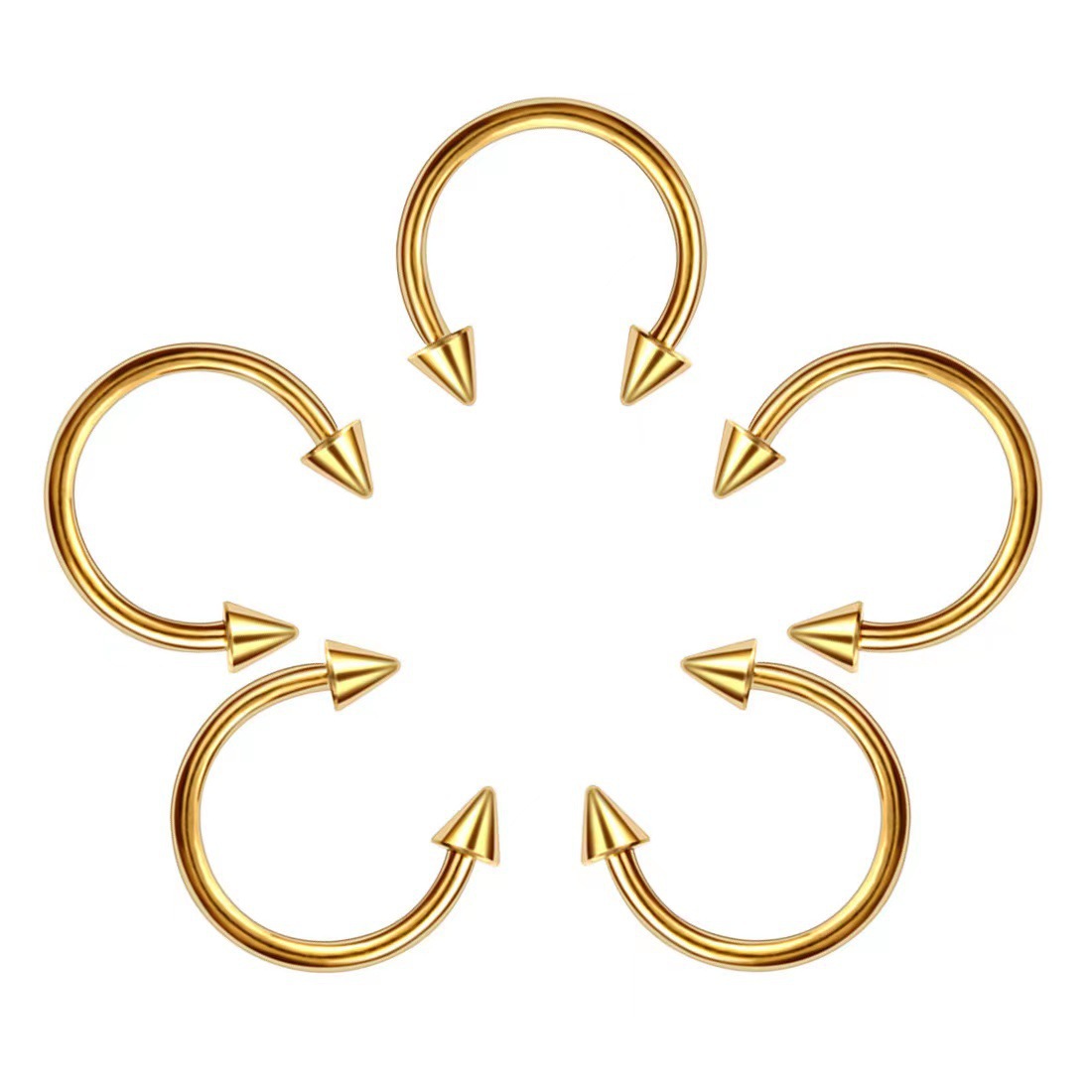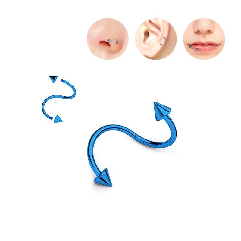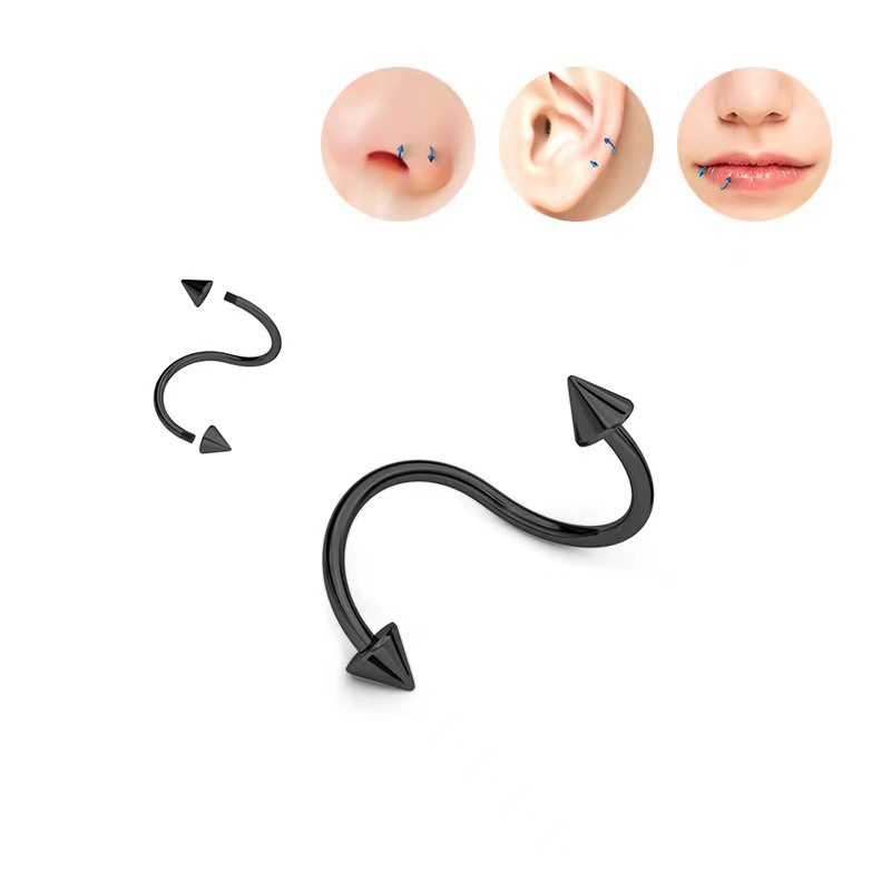 Cross-border mixed piercing styles: stainless steel threaded tongue piercing, curved barbell, pointed cone navel piercing, round ball lip piercing, eyebrow piercing, nose ring
