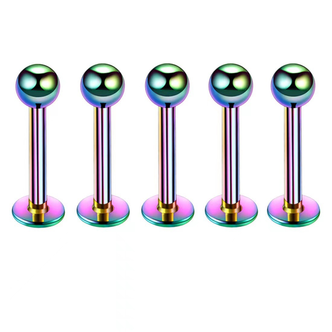 Estilos de piercings mixtos transfronterizos: barra curva roscada de acero inoxidable para la lengua, bola redonda puntiaguda para el ombligo y el labio.