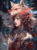 Pintura al óleo digital de zorro demonio para bricolaje, dibujos animados dibujados a mano en color para supermercado comercial