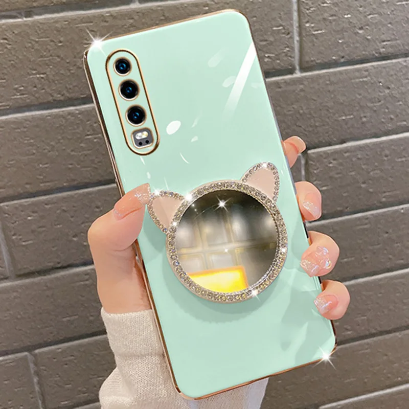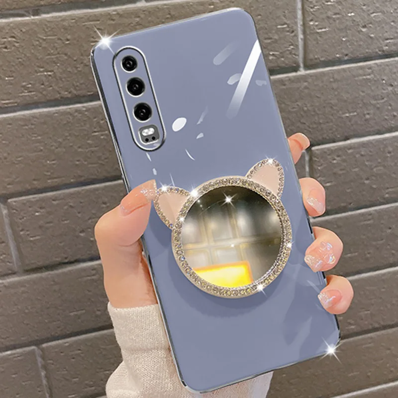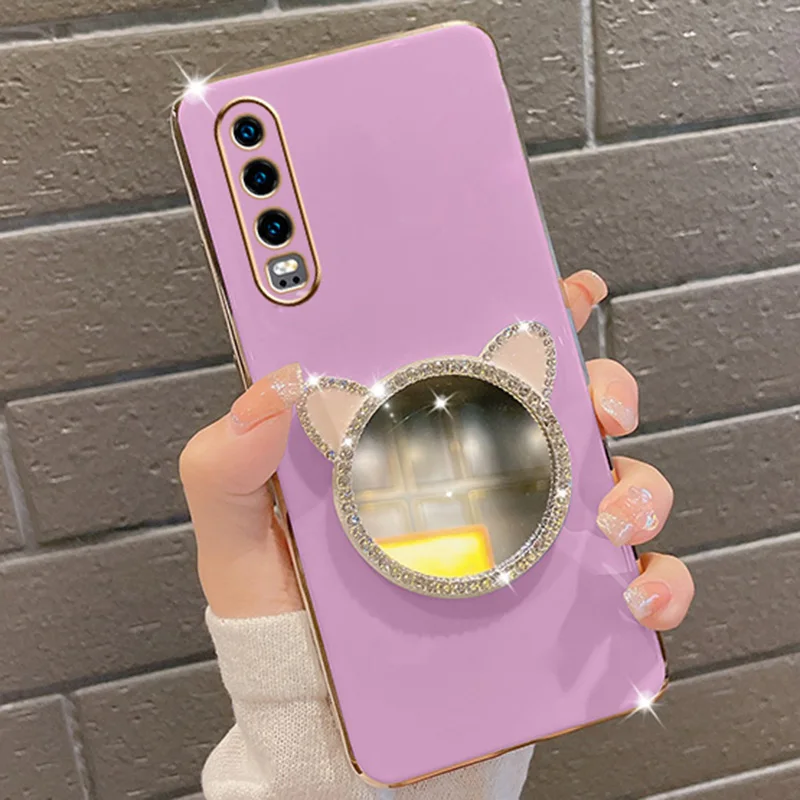 Plating Case For Samsung A34 A54 A33 A53 A32 A33 A13 4G 5G A12 A73 A25 A31 A21S A14 Diamond Cute Cat Ears Make-up Mirror Cover