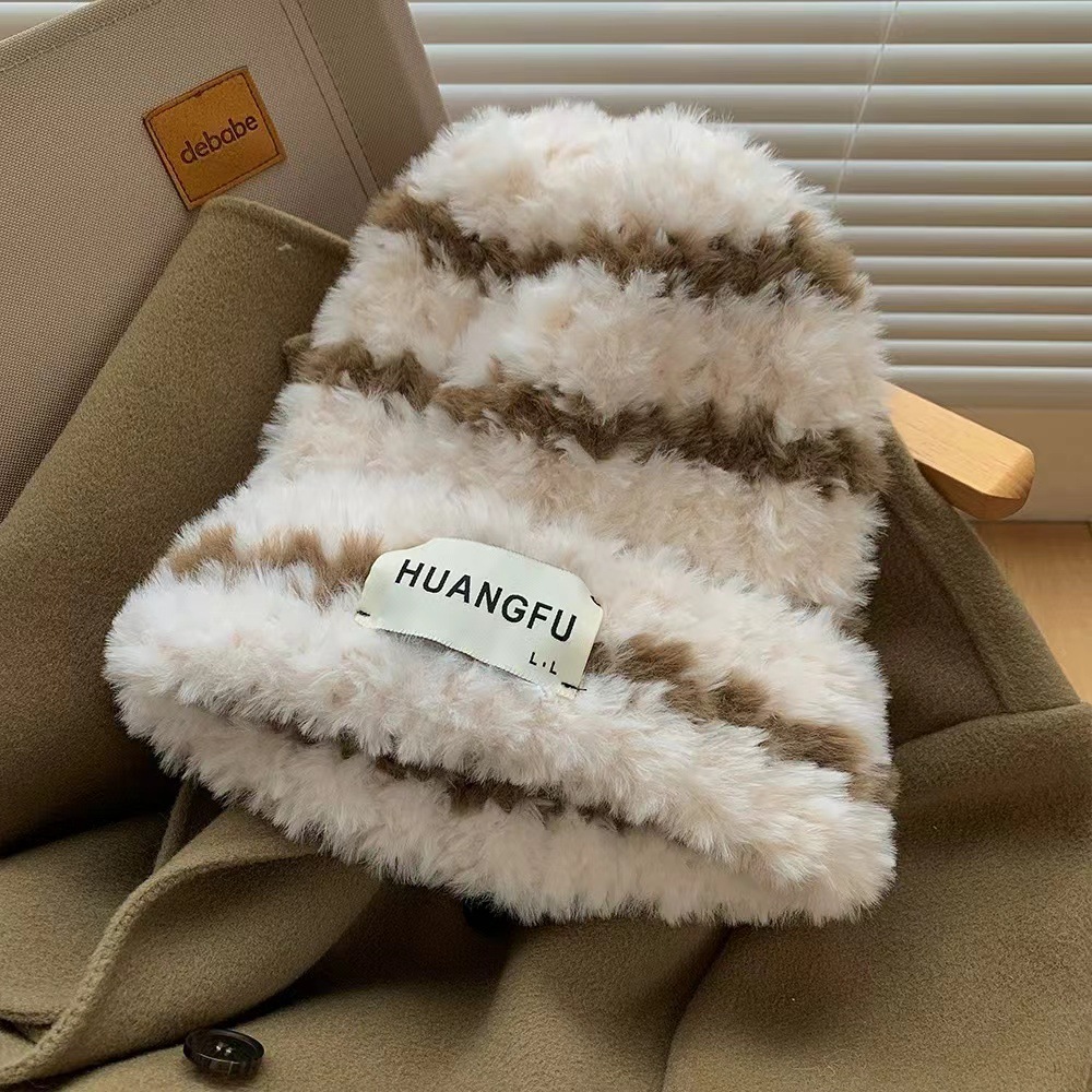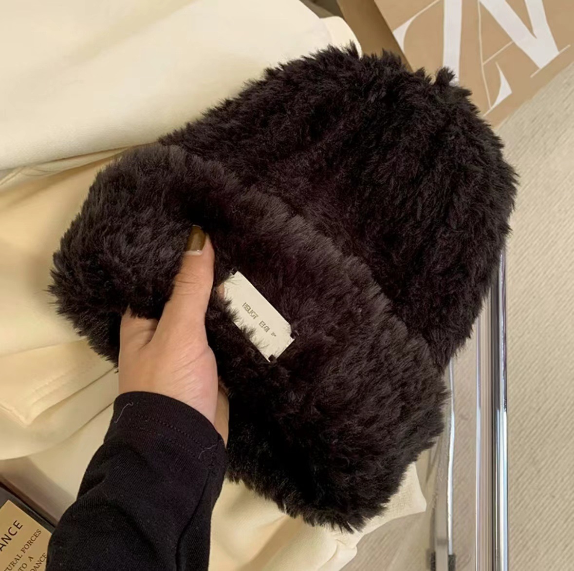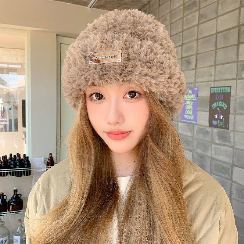 Gorro de felpa para mujer, versión coreana, tejido grueso y cálido, con cara visible, ideal para otoño e invierno.