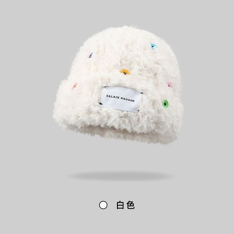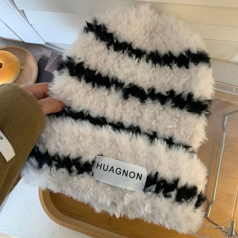 Plush Knitted Hat for Women in Autumn and Winter, Thick and Warm Knitted Hat, Korean Version, Face Showing Small Hat, Trendy