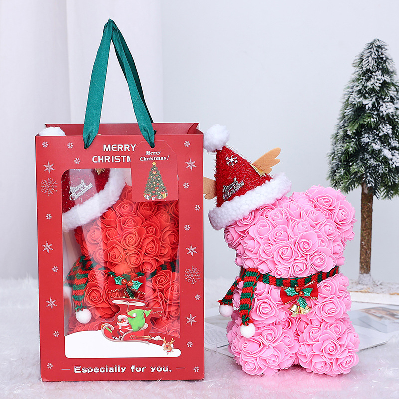 Regalos navideños: Rosa preservada con forma de oso, ideal como regalo de Navidad para niños. Adornos navideños de unicornio con forma de oso y flores de espuma PE. Adornos adorables.