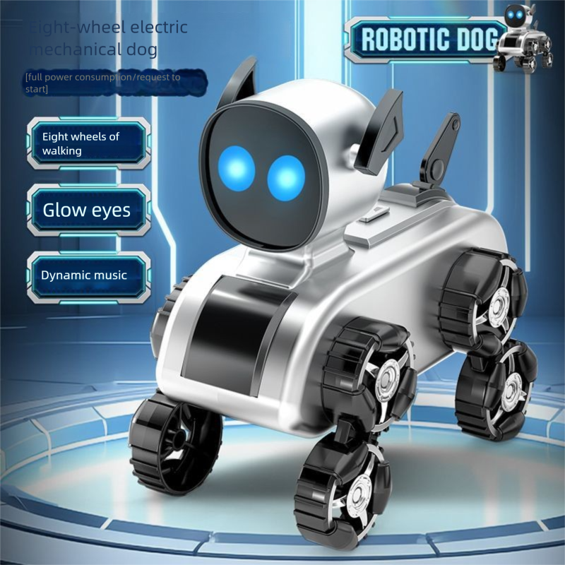 2025 Children's Intelligent Robot Dog Eight-Wheel Stunt Mechanical Dog with Lights and Music Boys and Girls Toy