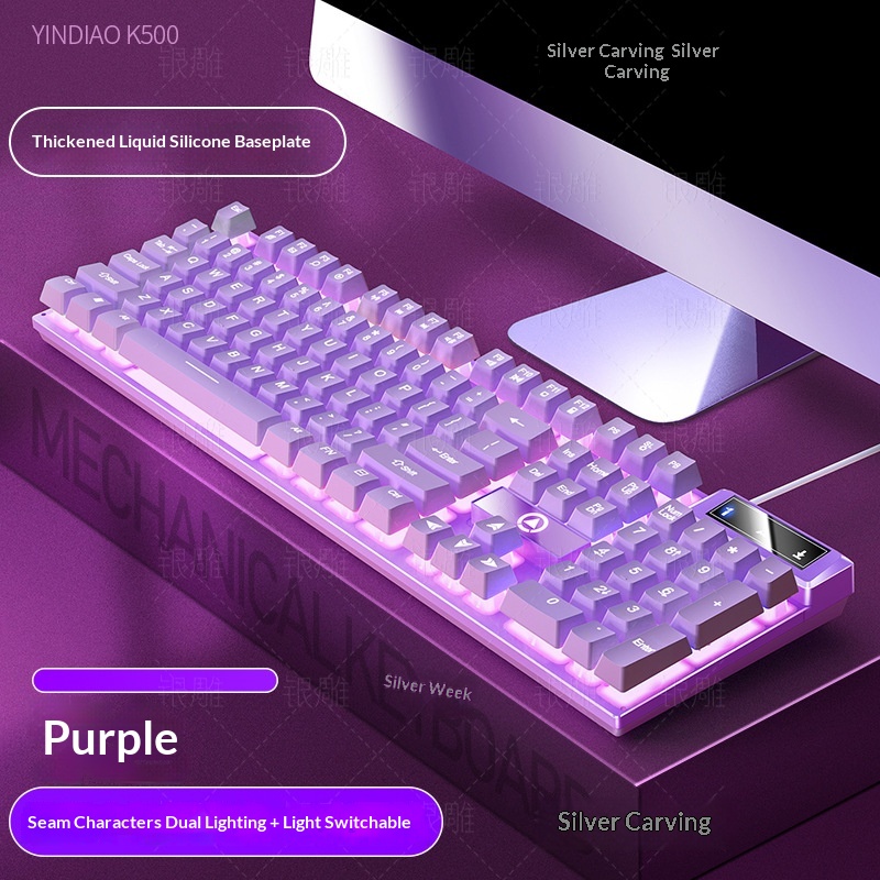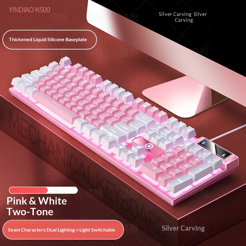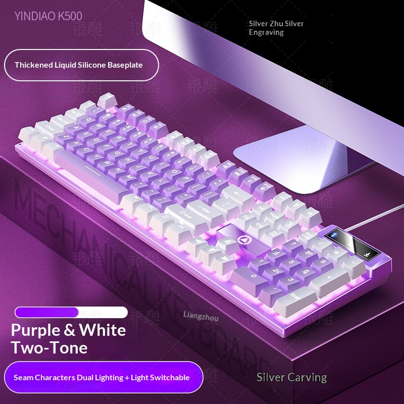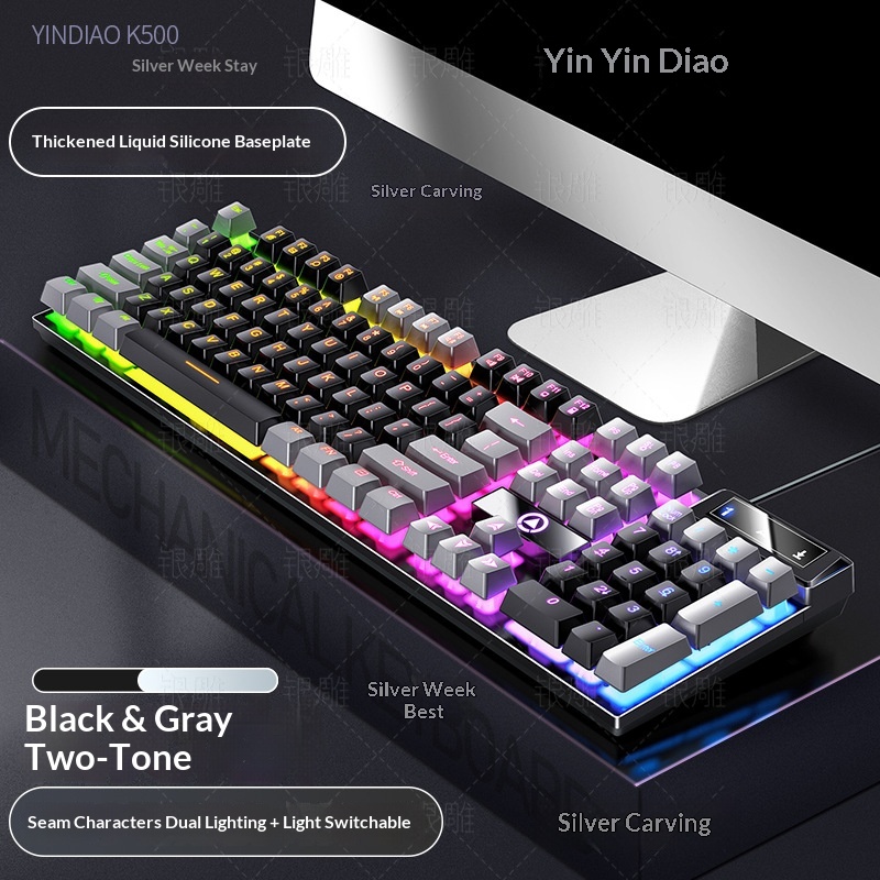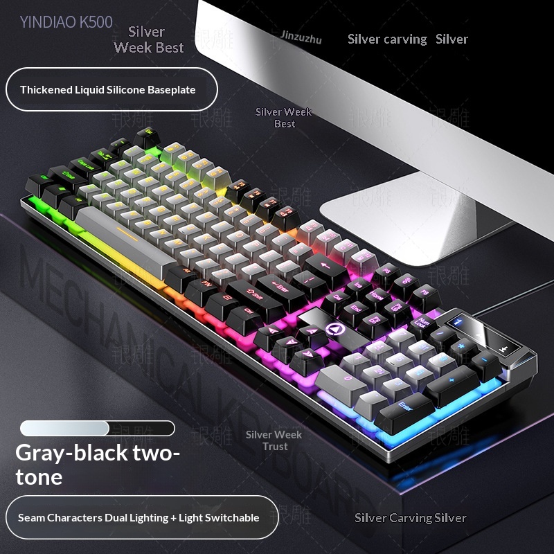 Silver Eagle K500 Gaming Wired Keyboard Color-blocking Luminous Mechanical Feel Desktop Computer Accessories Cross-border Wholesale AliExpress
