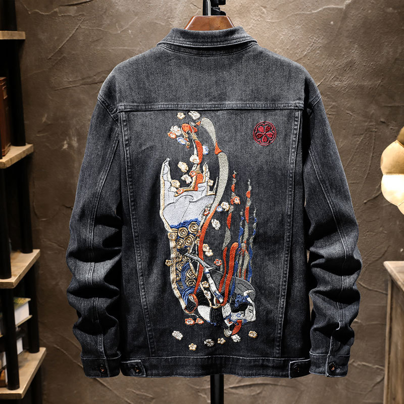 Spring denim jacket, men's embroidered Chinese style, personalized trend, handsome, elastic loose casual jacket, denim top