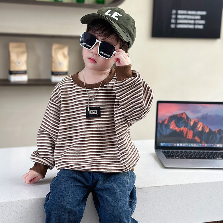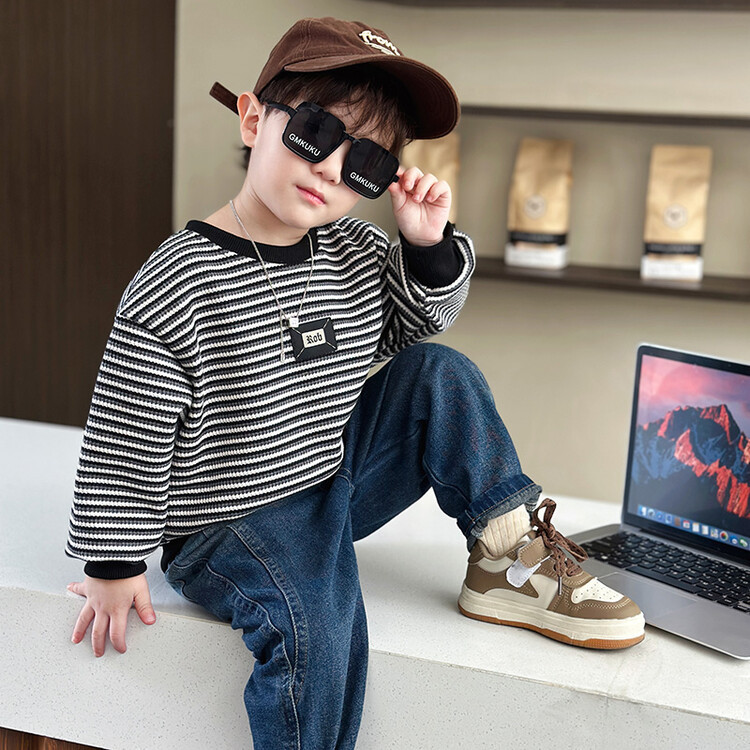 Boys Stripe Set 2023 Spring and Autumn New Children's Handsome Casual Two Piece Set for Boys with Western Style Long sleeved Clothes