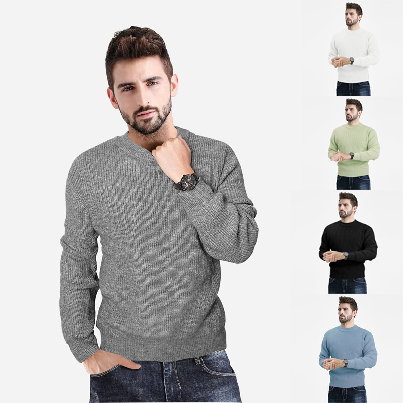 2022 autumn and winter new men's sweater round neck pullover solid color casual fashion knit sweater