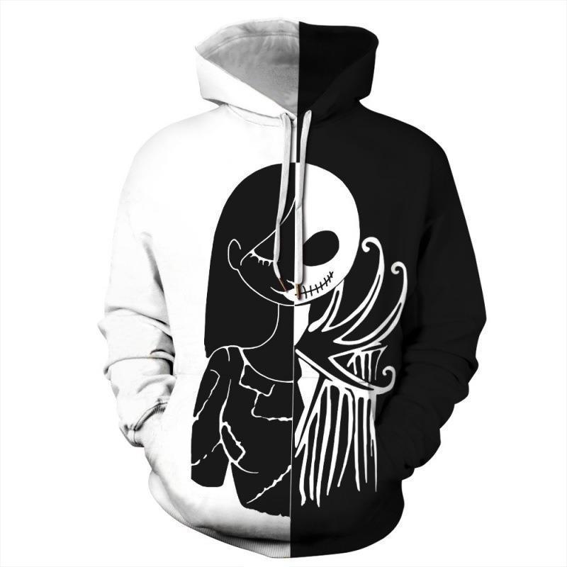 Sudadera con estampado digital 3D de otoño 2023 Nochebuena Scary Jack Pareja Cinturón suelto informal Recto