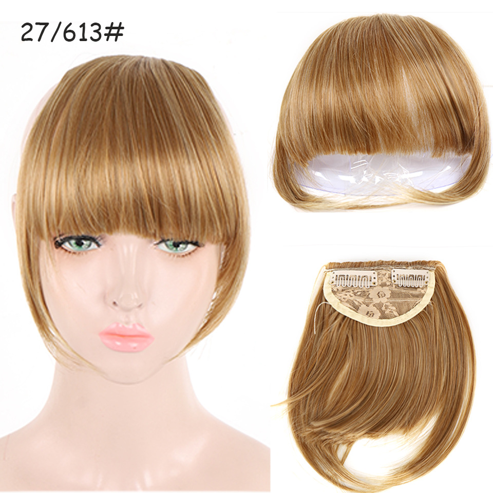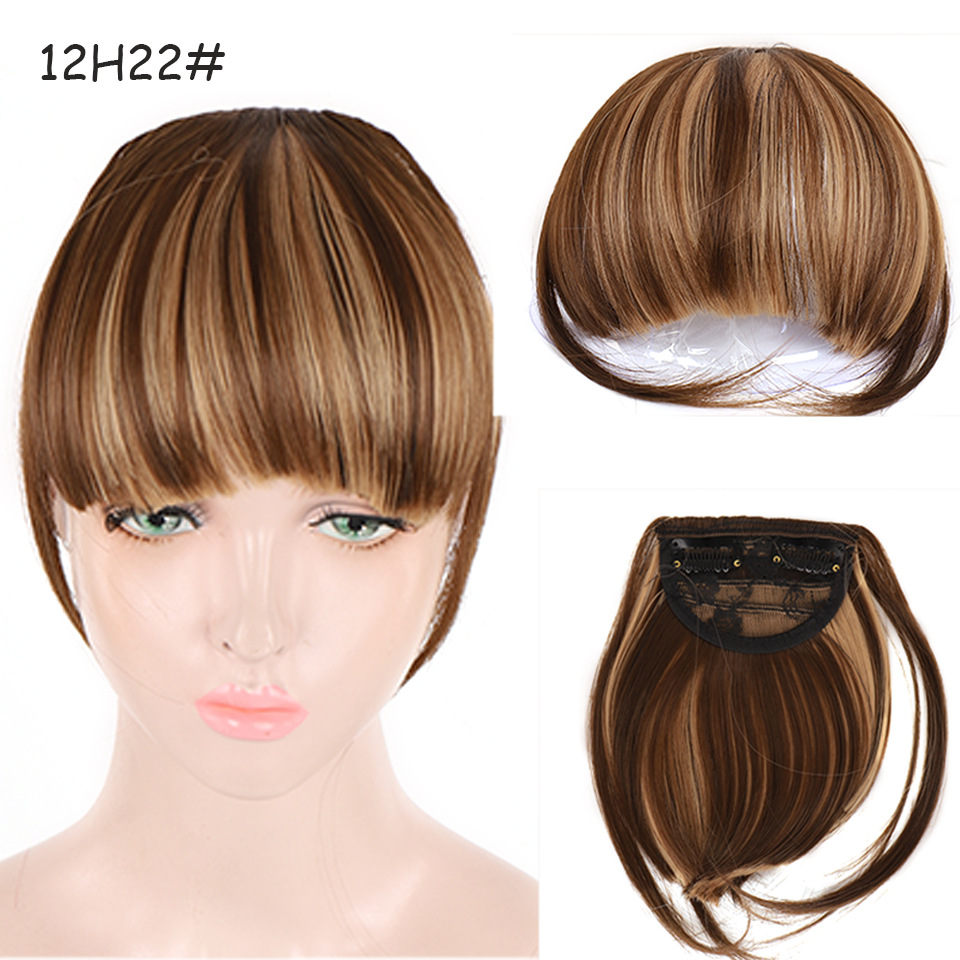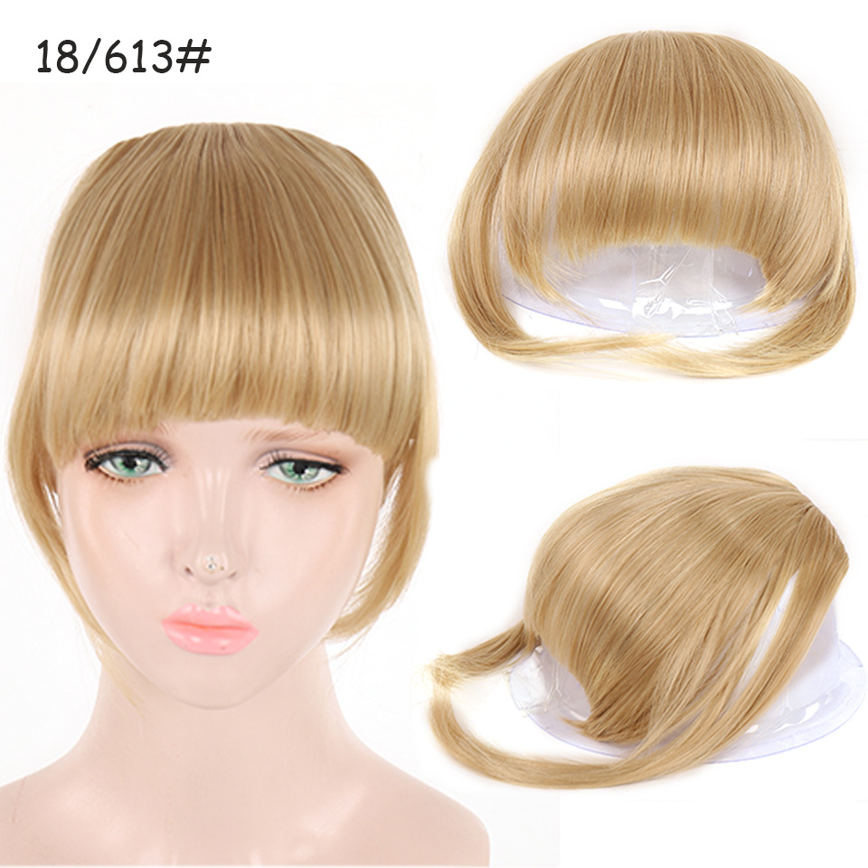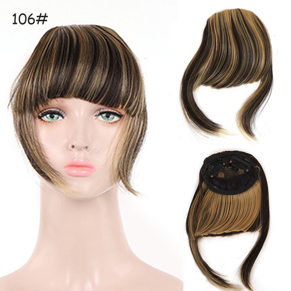 Pelo sintético para mujer de fibra sintética gruesa con patillas, flequillo recto, sin costuras, natural.
