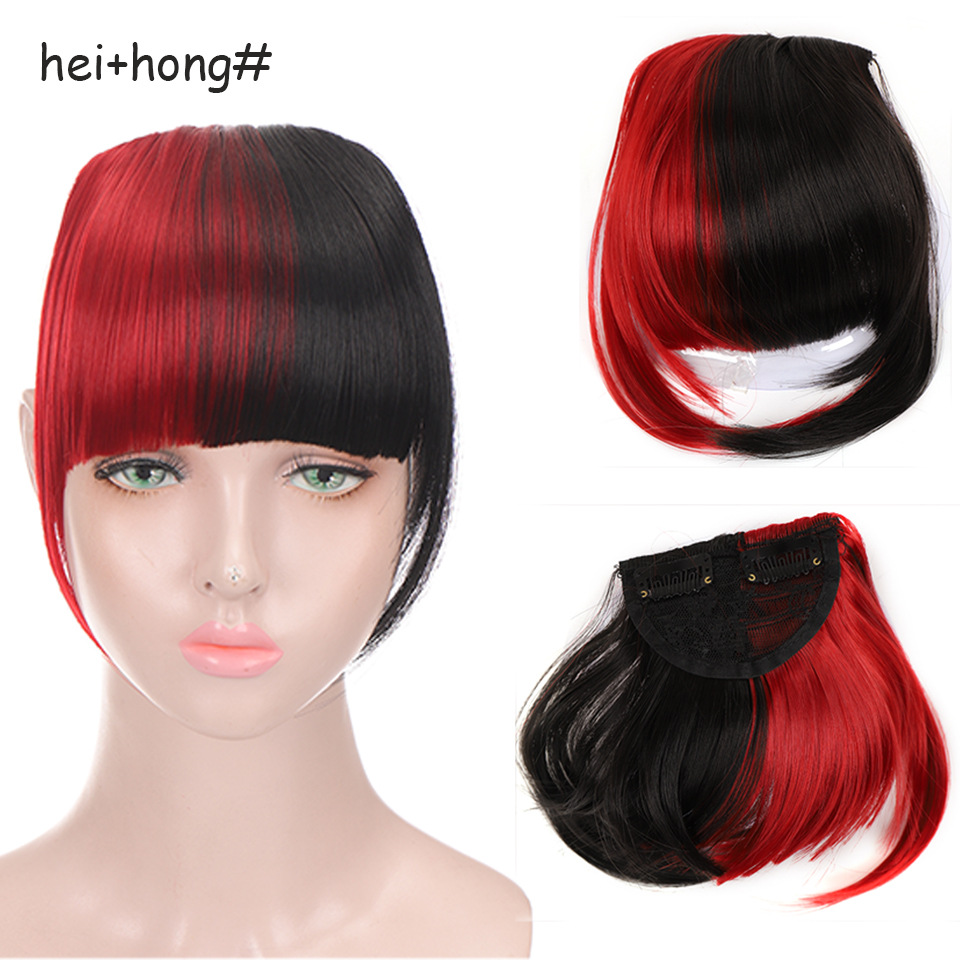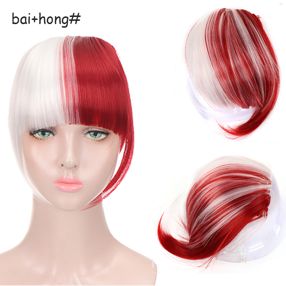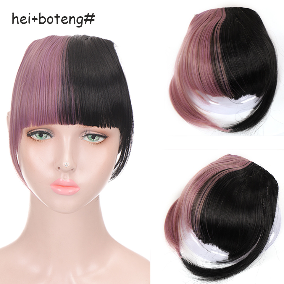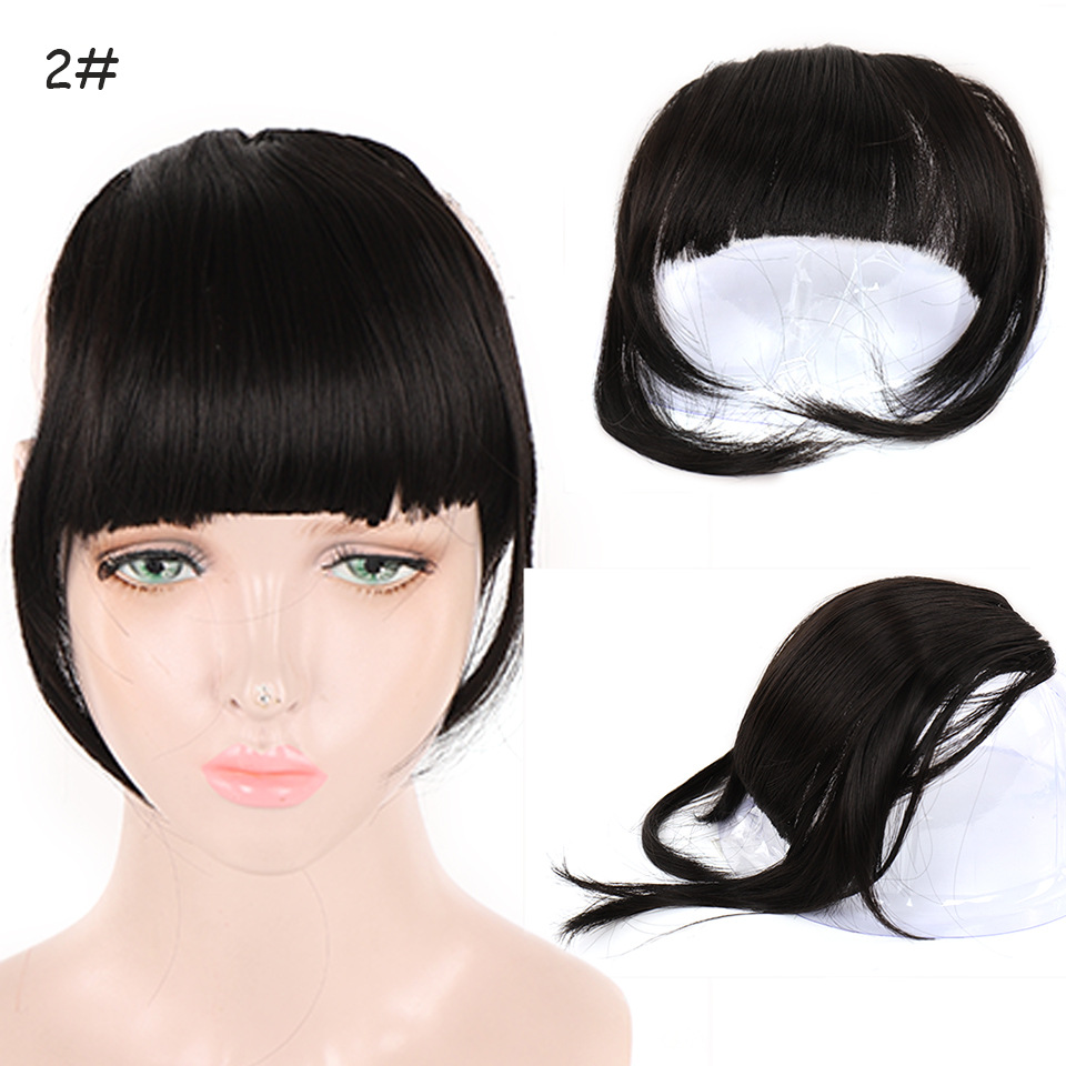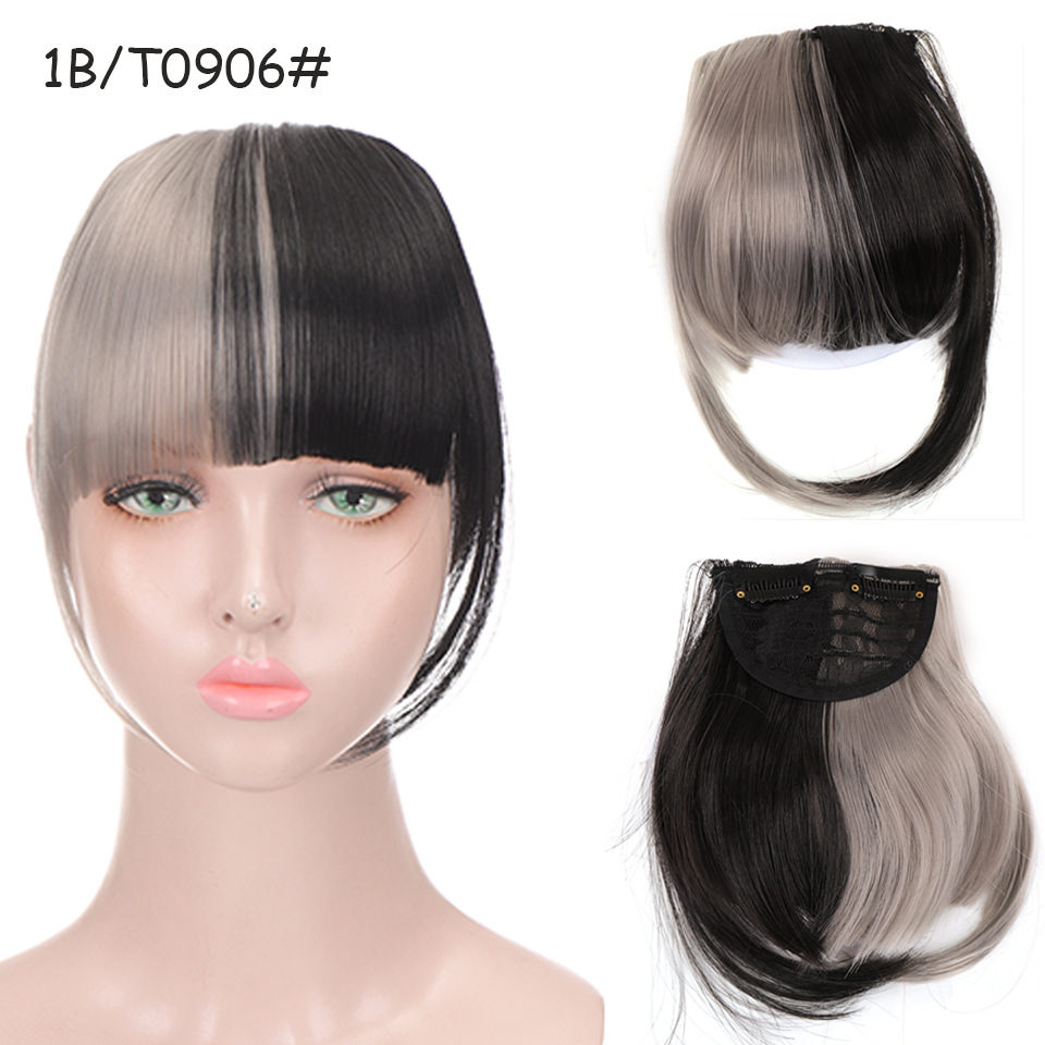 Pelo sintético para mujer de fibra sintética gruesa con patillas, flequillo recto, sin costuras, natural.