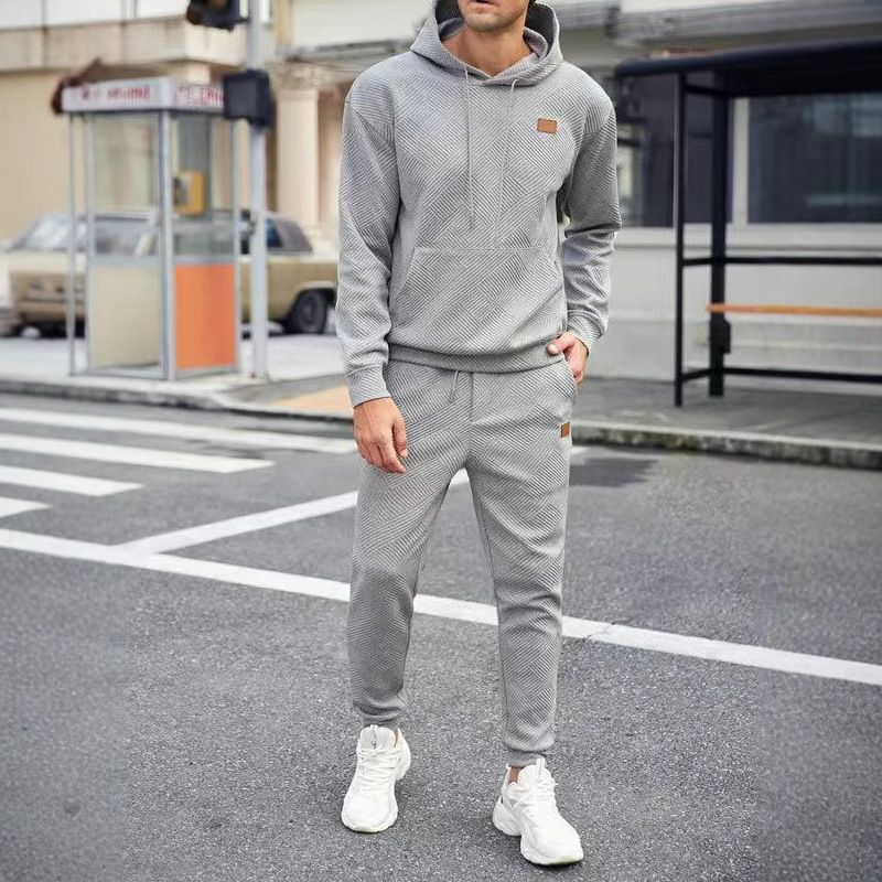 Traje de hombre nuevo otoño e invierno pesado comercio exterior color sólido sudadera con capucha pantalones con cordón cómodo traje deportivo casual para hombres