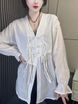 Traje Tang de primavera y verano con protección solar y cuello en V con encaje y hebilla retro.