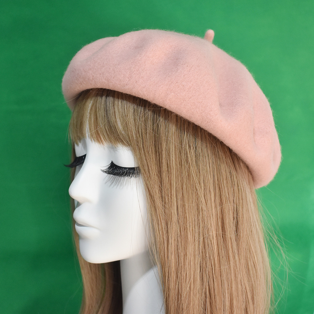Boina de lana premium unisex para mujer, gorro de pintor vintage para otoño/invierno, gorro de vendedor de periódicos rosa