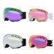 Adult snap on ski goggles, lightweight, anti fog, large spherical, soft half frame, interchangeable lenses, goggles