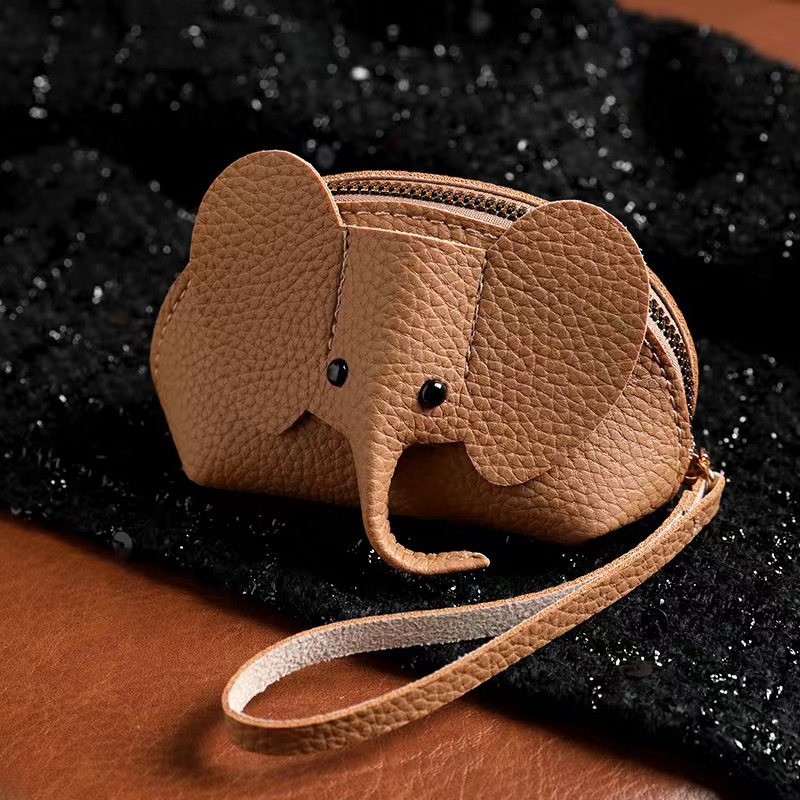 Cartera, llavero, tarjetero creativo, monedero de piel con forma de elefante, con cremallera, bolsa de mano para guardar pintalabios