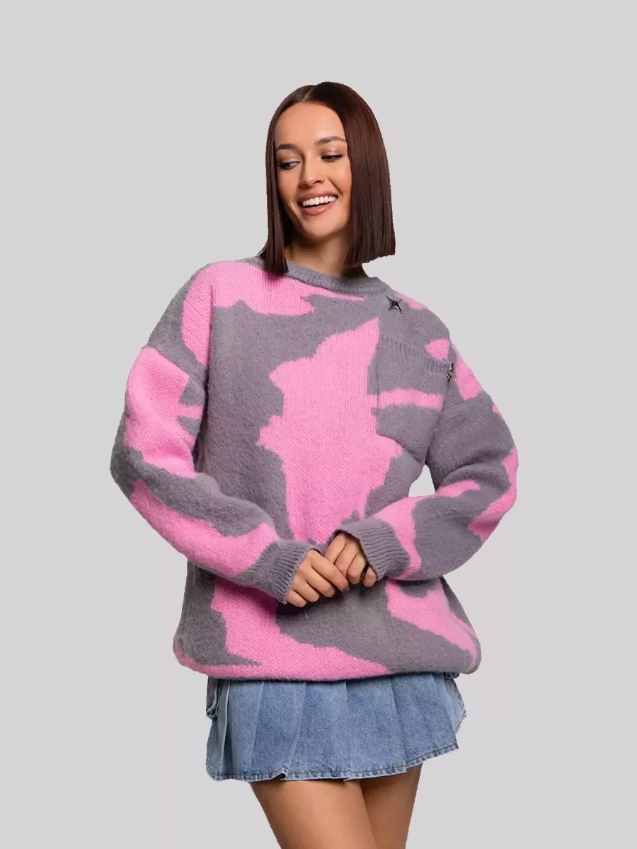 Wind contrasting color round neck plus size sweater for women, 2024 autumn and winter new loose and trendy knitted sweater top