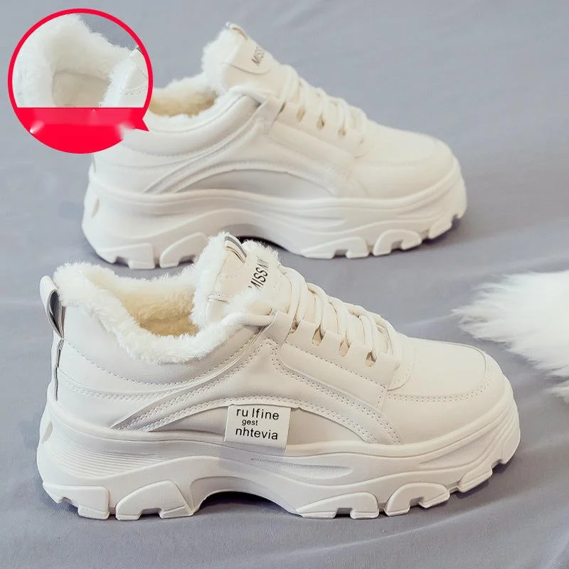 2023 Autumn and Winter New Versatile Dad Shoes Women's Thick Sole Heightening Sports Little White Shoes Instagram Trendy Plush Cotton Shoes