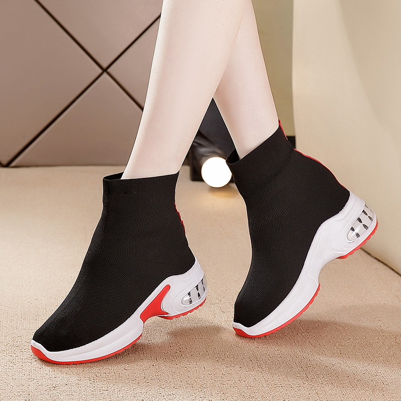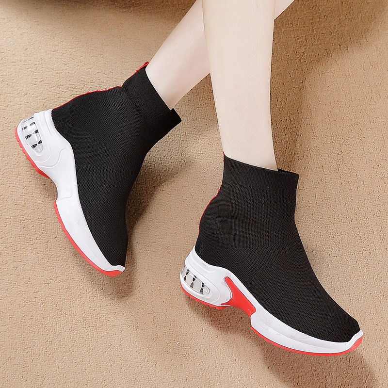 Autumn style elastic high top thick sole round toe flat heel sports mesh sock boots with raised socks and shoes