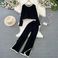 Ropa de mujer traje de temperamento de moda primavera y otoño 2024 nuevo estilo empalme contraste de color tejido pantalones superiores suéter de dos piezas