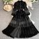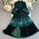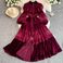 Falda larga de terciopelo con cuello alto, encaje y perla de una sola botonadura para mujer