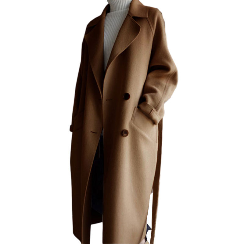 "Gabardina oversize de lana para mujer – Largo hasta la rodilla, corte holgado con cinturón, prenda esencial de otoño de inspiración coreana"