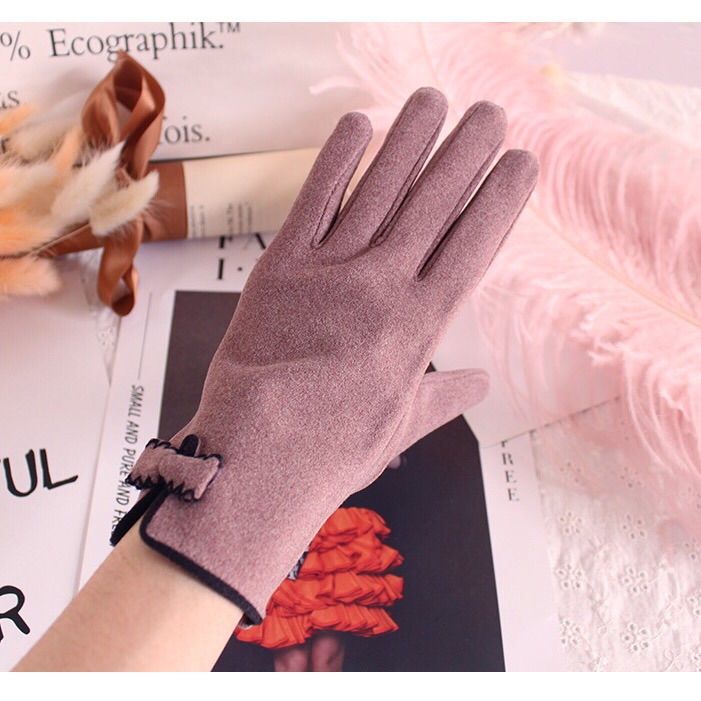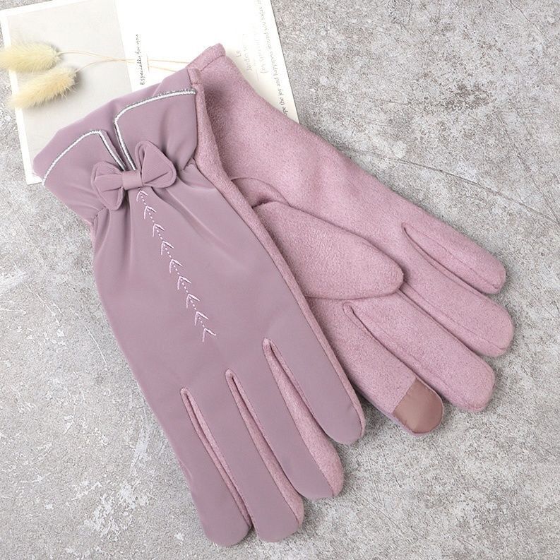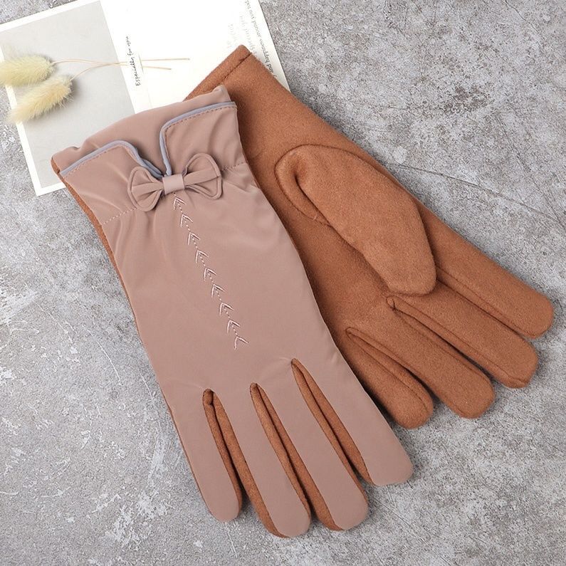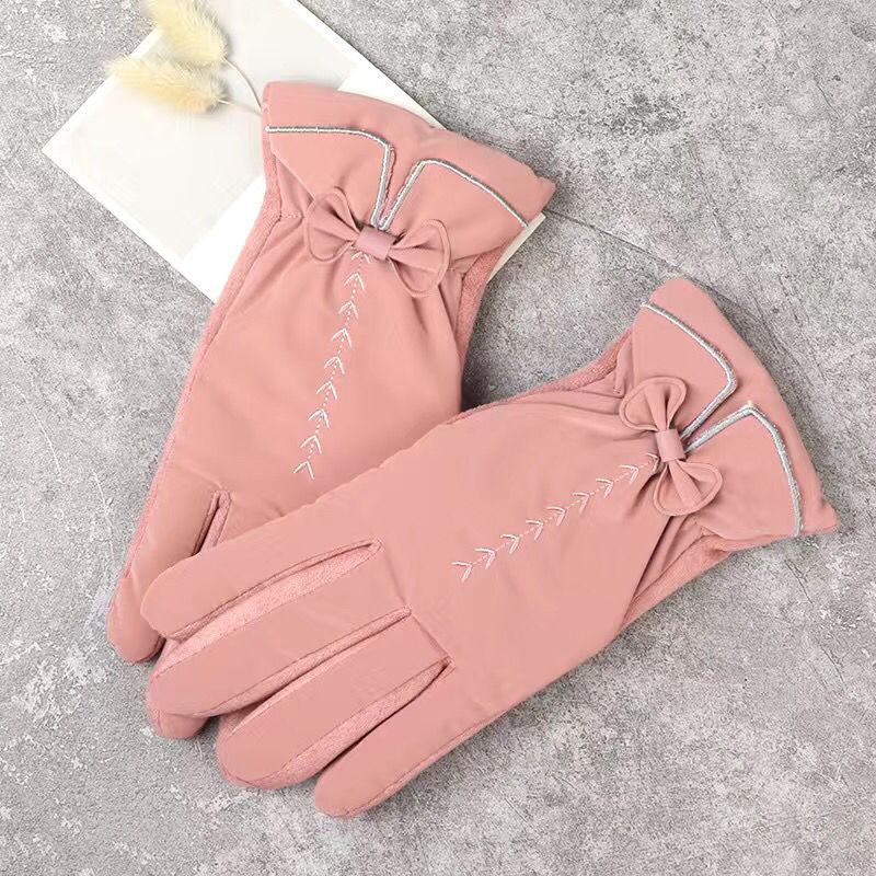 Guantes autocalentables para mujer, pantalla táctil cálida, modelos de otoño e invierno, lindos lazos, conducción de moda, versión coreana de calefacción Derong