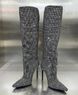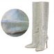 Botas de mujer con tacón de aguja, punta puntiaguda y cristales estrellados, hasta la rodilla, de pasarela, talla grande
