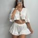 Pijama de mujer tipo cárdigan y de tirantes con mangas cortas con volantes y pantalones cortos que se pueden usar al aire libre.