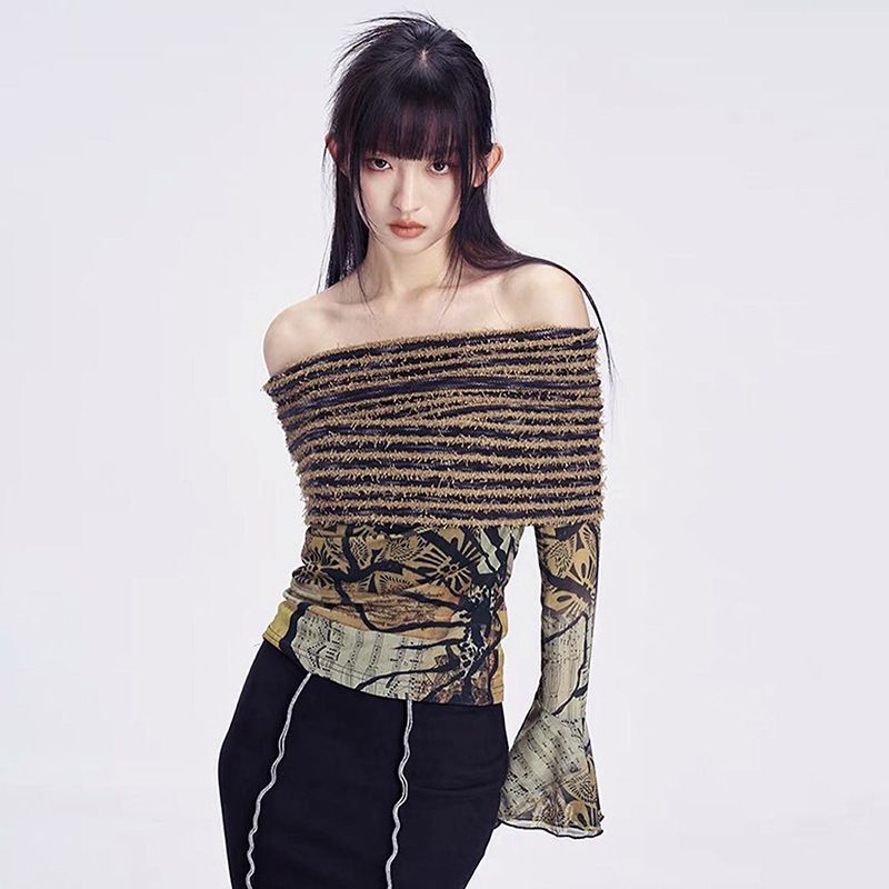 Y23TP638 Top de un hombro con estampado personalizado para mujer, estilo versátil, 2024